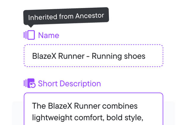 Effortlessly manage large product catalogs by letting your variants automatically inherit shared information from their ancestors.